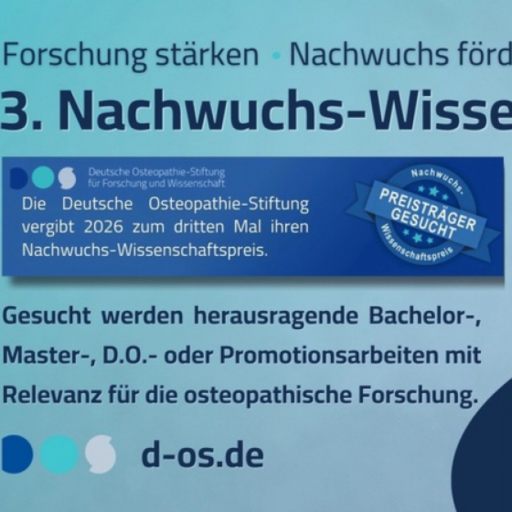 Anlässlich des 150. Geburtstags der Osteopathie, die von Andrew Taylor Still 1874 in Virginia begründet wurde, setzt die Deutsche Osteopathie-Stiftung (DOS) ein starkes Zeichen: Insgesamt 150.000 Euro stellt die DOS für bis zu drei wissenschaftlich initiierte Forschungsprojekte zur Verfügung. Ziel ist es, die Potenziale der Osteopathie besser zu erforschen, um die Patientenversorgung nachhaltig zu verbessern.